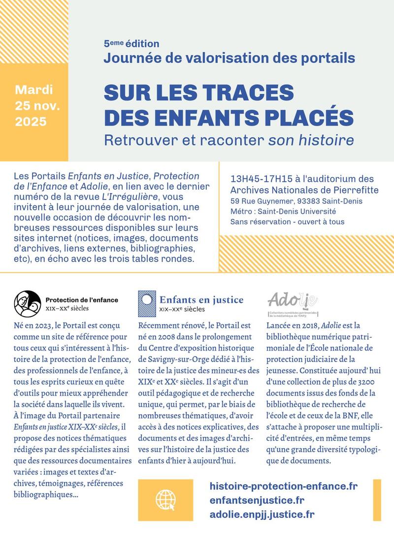 5ème journée de valorisation des Portails " Sur les traces des enfants placés. Retrouver et raconter son histoire", 25 Novembre 2025